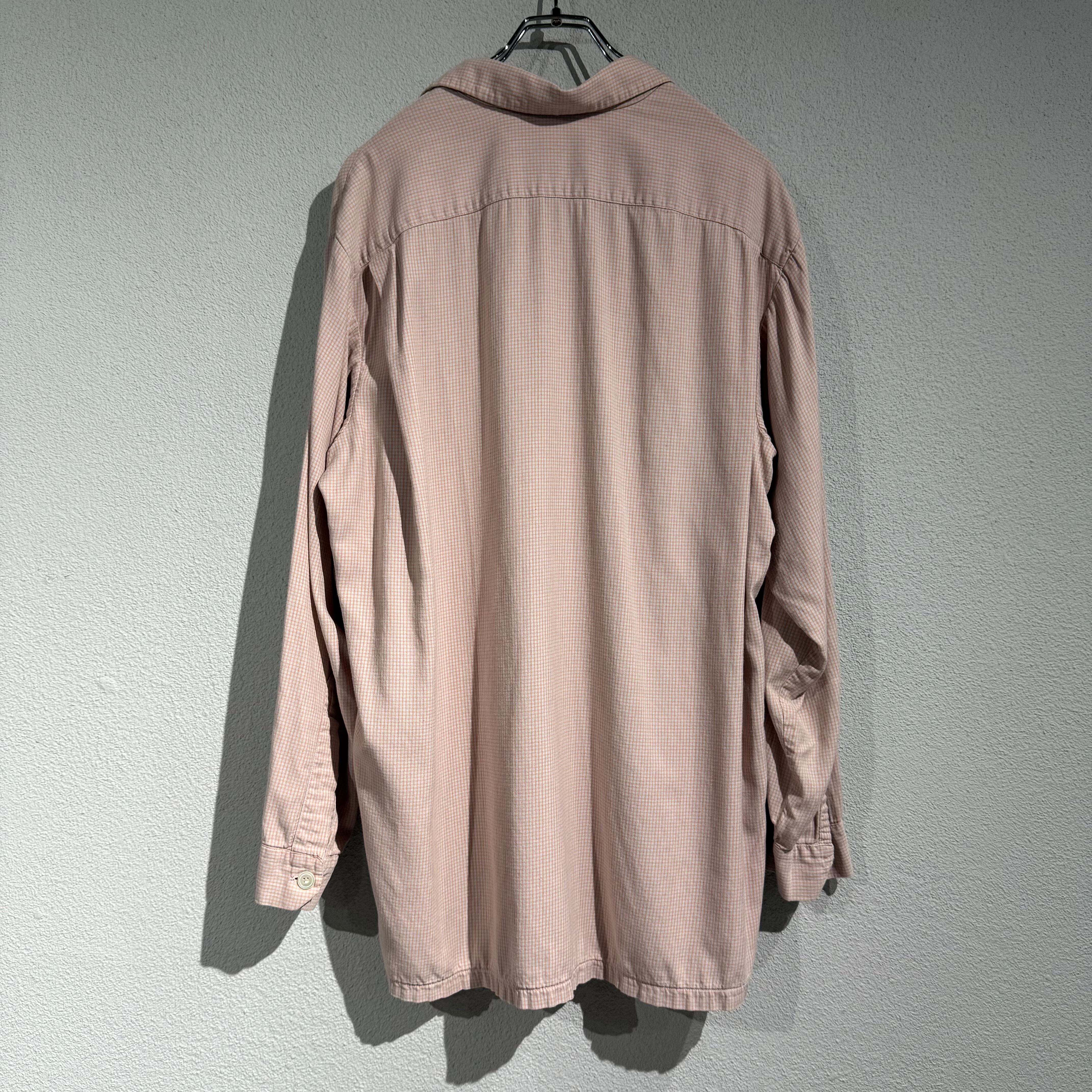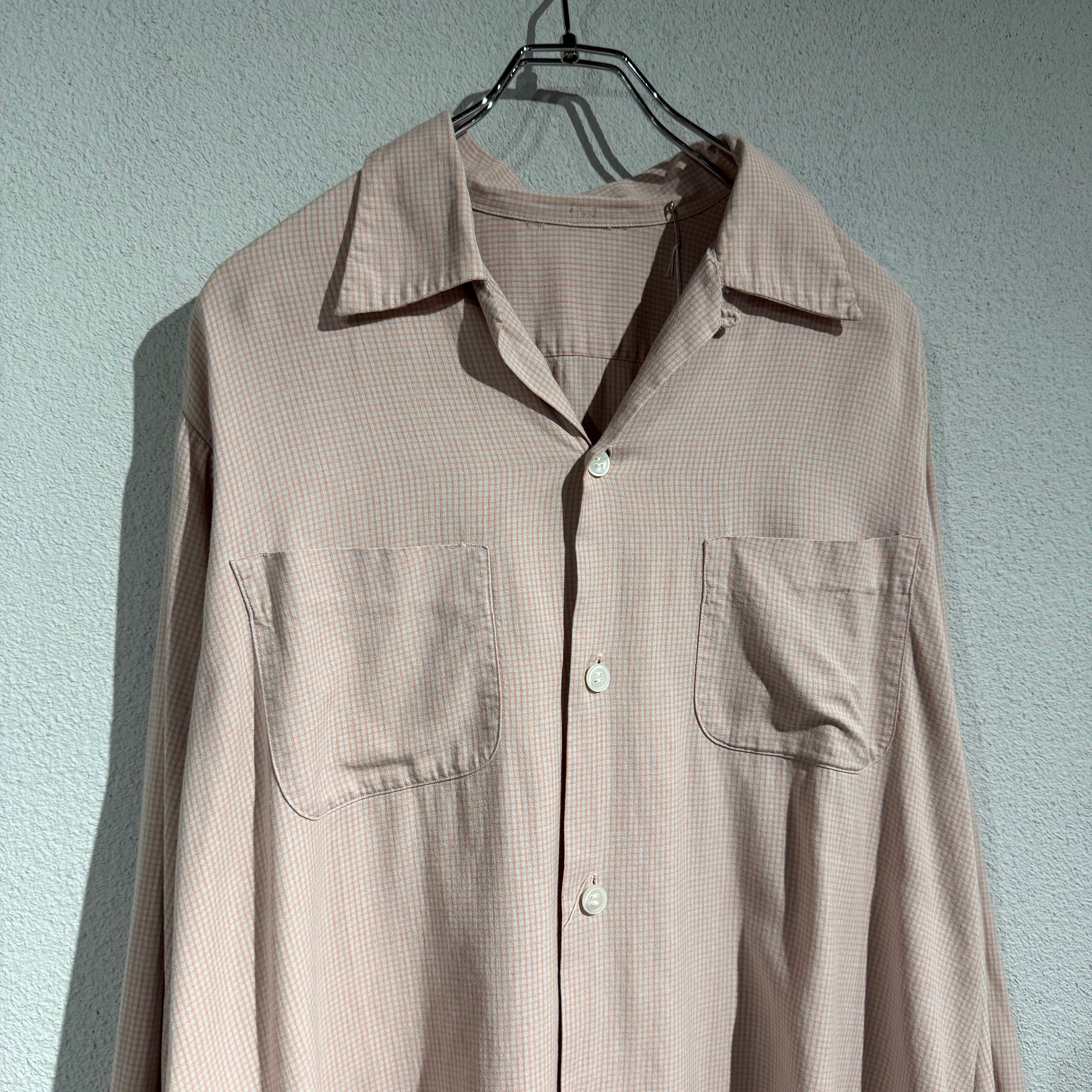 50s~ cotton × rayon check open collar shirt "pink"