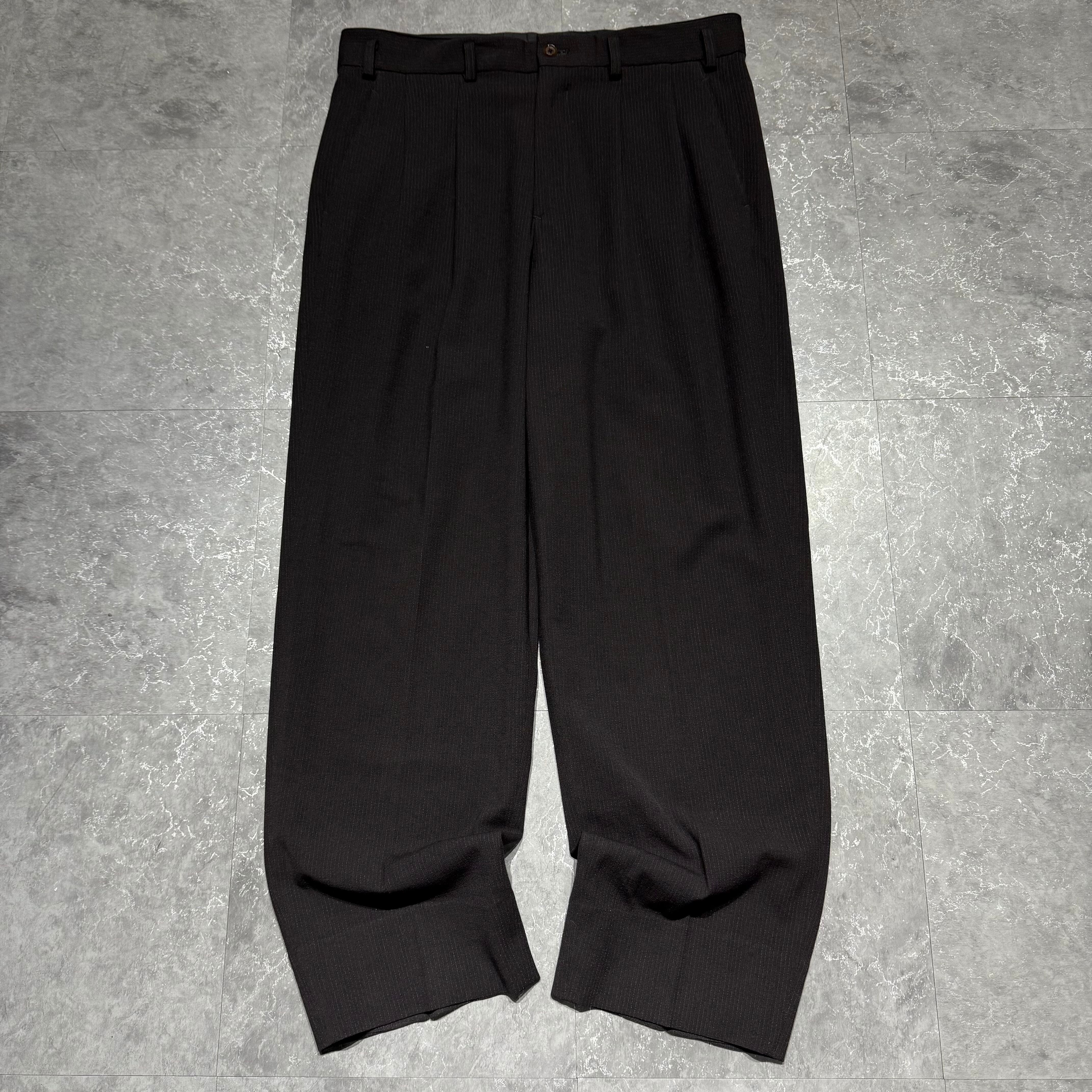 90s~ Y's for men dot stripe pattern wool × rayon drape wide slacks